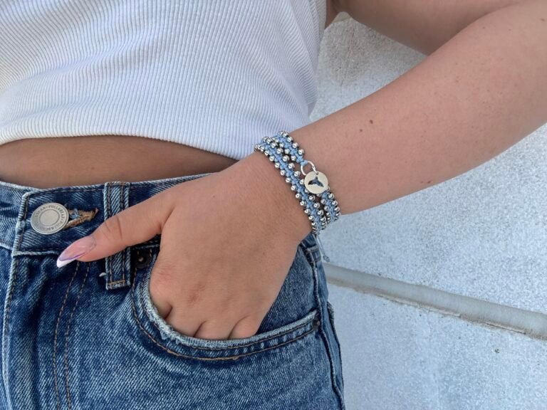 צמיד בעבודת יד עשוי מחרוזי 4 מ"מ ותליון FLOWER וסגירה מתכווננת.